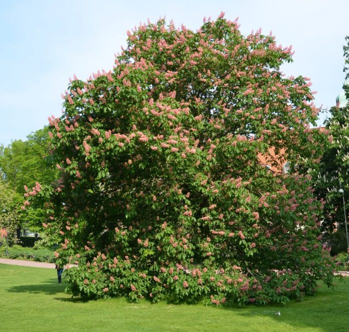 Aesculus x carnea i full blomst i en park i Malmö. Foto: Ole Billing Hansen
