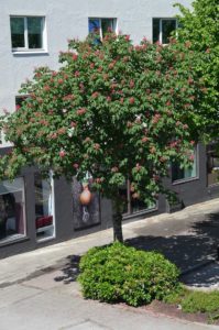 Rød hestekastanje kan brukes som gatetre. Foto fra Sandnes 2016. Foto: Ole Billing Hansen