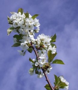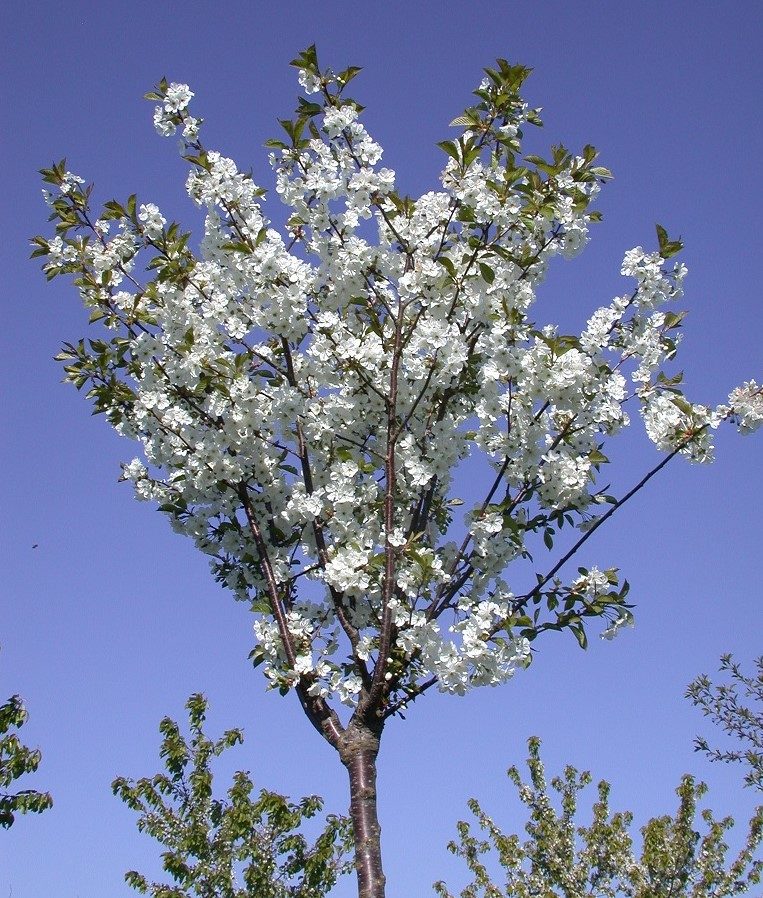 Blomstrende kirsebærtrær har stor prydverdi. Denne kultivaren er et riktblomstrende, tettkronet, lite tre som får kritthvite blomster samtidig med løvsprett i mai.