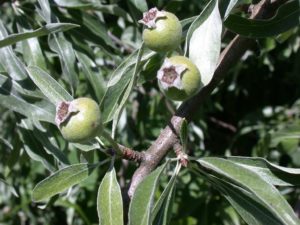 Vierpære (Pýrus salicifólia Pall.), som i Sverige har det mer beskrivende navnet «silverpäron», blir et lite tre, bare inntil 5-8 meter høyt. Plantene er like gjerne flerstammete som énstammete, og vi kan mange steder oppleve arten som en stor busk. Den er derfor ikke særlig godt egnet som gatetre, men i hager og parkanlegg gir det sølvfargete bladverket en god kontrast til det øvrige grønnsværet. Arten blir gjerne kalt for «Nordens oliventre».