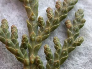 Mange av flatebladene har en halvkuleformet blære som inneholder et duftende harpikssekret. Foto: Jeanette Brun