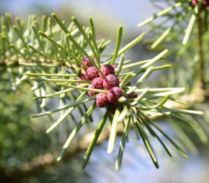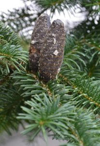 Barken er tynn, sølvgrå, seinere grå til brun. Kvisten er grå og uten behåring eller kort dunbehåret. Vinterknoppene er små, kule- til eggformete og med harpiks. Hvert nåleblad er 2,5-4 cm langt og avrundet eller utrandet, det vil si med et lite hakk inn i spissen. På oversiden av nålene finner vi ett midtstilt spalteåpningsbånd, mens de to spalteåpningsbåndene på undersiden er skilt fra hverandre av en grønn midtnerve. Nålene dekker kvisten delvis og buer oppover. Artene er tilpasset vindbestøving. Røde hannblomster-stander sitter i bladhjørner på de midtre og nedre greinene, mens konglene hovedsakelig finnes på greiner øverst i krona. De er 6-13 cm lange, blålige til dypt purpur før modning og uten synlige dekkskjell. Ved modning blir konglene brune og faller fra hverandre, slik at bare kongleaksen og de aller nederste kongleskjellene sitter igjen på treet. Frøene er avlange, kantete og 5-10 mm lange.