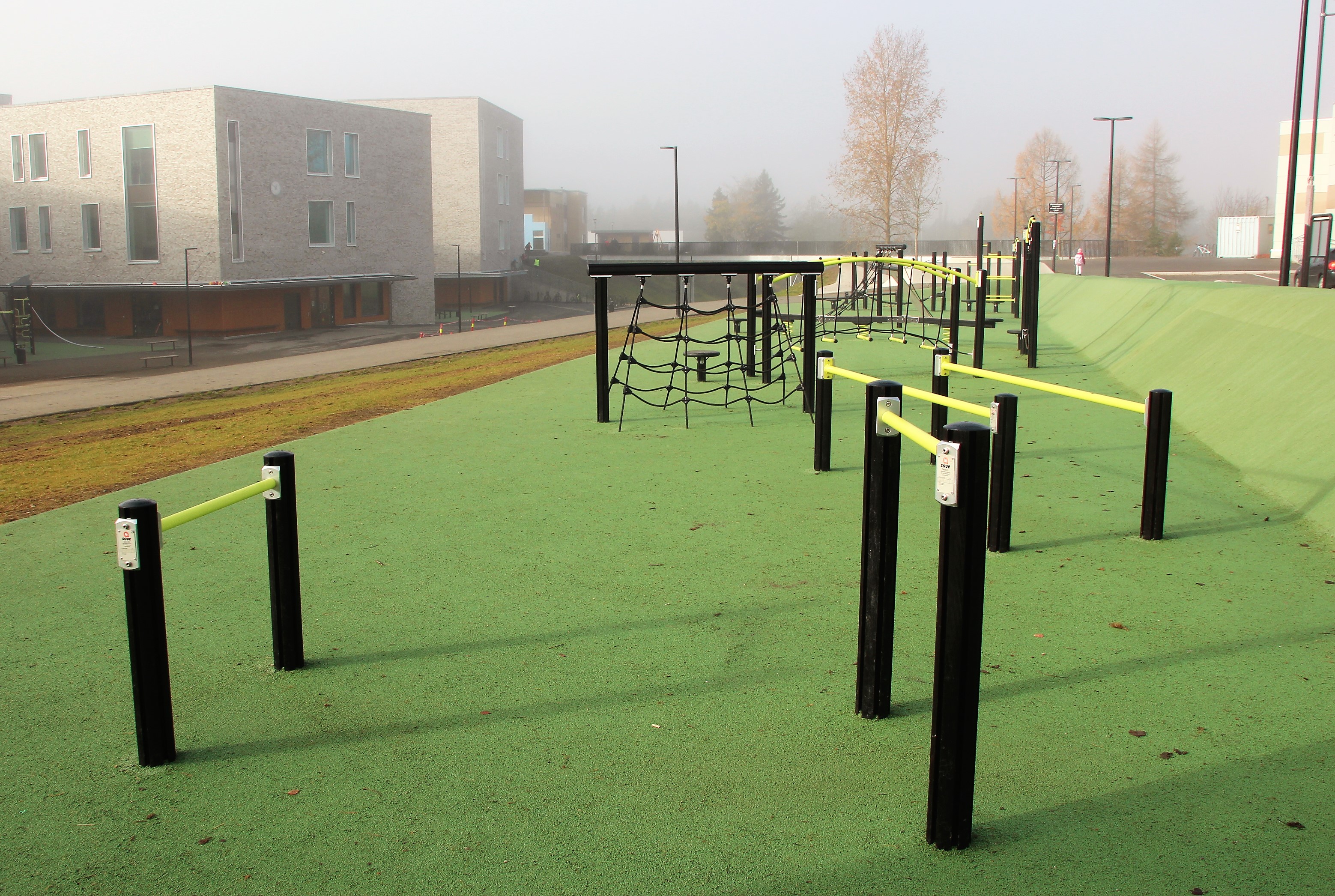 Skolen ligger i et gammelt ravineområde, og alt utstyr er i farger som skal gjenspeile området skolen ligger i. Apparatene skal ivareta trening, aktivitet, lek og sosiale ferdigheter for alle klassetrinn.