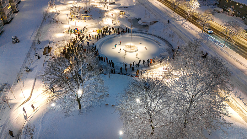 Høy skøyteaktivitet og sosialt liv på Arenaen. Foto: Foto: Lørenskog kommune / Farid Dino Omer