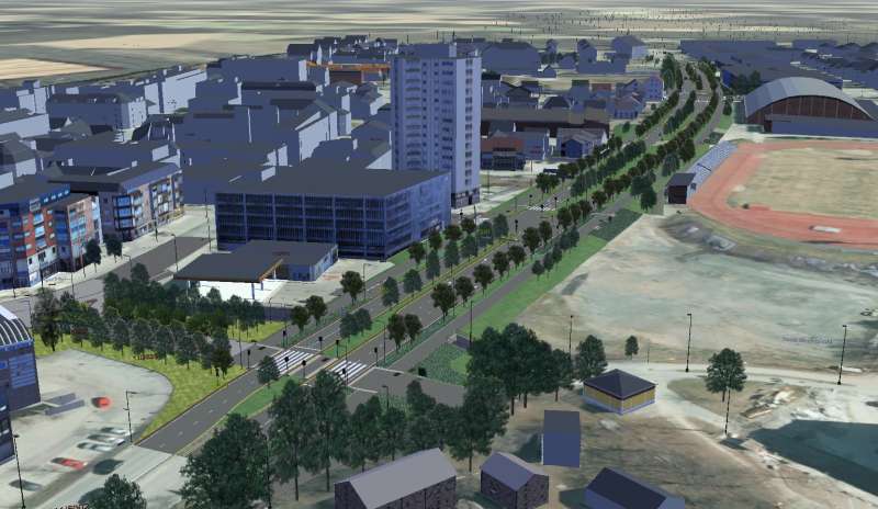 Ill:  Modell av nye fv. 282 Bj. Bjørnsons gate høsten 2018, Statens Vegvesen