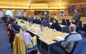 En samlet parkstab overvar overrekkelsen av prisen i Sarpsborg rådhus 26. november. Juryleder landskapsarkitekt Guri Vallevik Håbjørg orienterer om begrunnelsen for pristildelingen.