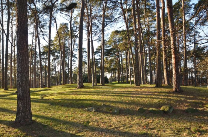 Kulåsparken er en velskjøttet naturpark dominert av store furutrær.