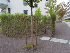 Dreieskiva borettslag i Kværnerbyen. Anlegget ble prosjektert av AsplanViak og utført av Lindhaugen AS. Her er det tak over garasje og næringslokaler. En labyrint av pil er blitt en naturlig og spennende lekeplass. Stedet har vakker beplantning med fokus på blomstring gjennom hele sesongen. Borettslaget vant i 2018 Oslo kommunes hagepremieringskonkurranse for byens vakreste uterom. Lekeplassen er skjermet av frodig vegetasjon og ligger tilbaketrukket fra gjennomgangsområdet. Innflytting i borettslaget var i 2013. Foto fra 2019: Anne Cecilie Oterkjær