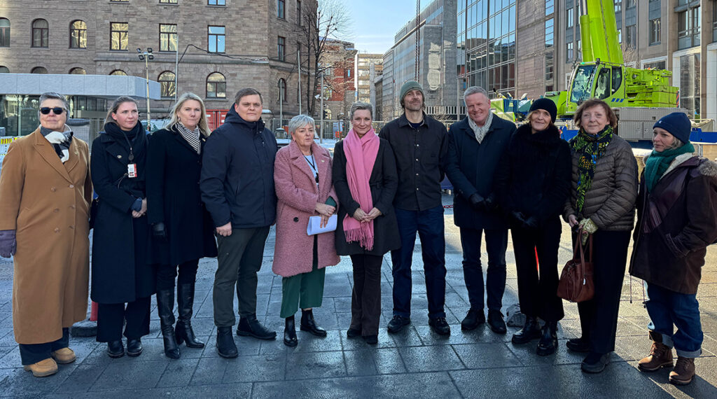 Statsbygg og Kunst i offentlige rom – KORO har ansvaret for byggingen av det nasjonale minnestedet for 22. juli. Sammen med oppdragsgiver, Digitaliserings- og forvaltningsdepartementet – DFD, inviterte de tirsdag 24. februar utvalgt presse til å overvære at fundamentet var lagt på Johan Nygaardsvolds plass. Digitaliserings- og forvaltningsminister Karianne Tung, kunstner Matias Faldbakken, representant fra Den Nasjonale Støttegruppen etter 22. juli Merete Stamneshagen og lederen av AUF Gaute Skjervø var på plass for å si noen ord om minnestedet og prosessen fremover. I tillegg til pressen møtte en sammensatt gruppe av involverte parter opp for å markere og se at minnestedet vokser frem.
