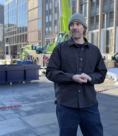 Status per nå Kunstneren bak En opprettholdelse, Matias Faldbakken, fortalte om status for arbeidene som nå pågår. Grunnrammen og fundamentet som ble etablert dagen før danner fotavtrykket til skulpturen. Snart skal den store betongveggen, som skal holde mosaikkbildet og støtteapparatet rundt, settes opp. Prosessen med å få gravert inn navnene til alle de som ble drept i terrorangrepet, på den lange stålbjelken som vender inn mot plassen, er i gang. Tidligere på dagen hadde Faldbakken vært på befaring på verkstedet i Rakkestad og fortalte at graveringen ser veldig fin ut.