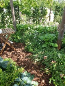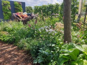 svalende oppholdssteder, men slik at hagen også kan avhjelpe ved episoder med skybrudd. – Vi vil gjerne inspirere til langt større biodiversitet på alle kvadratmetere i alle hager – og til at man slipper løs fantasien. Kan hende man til og med slår seg sammen med naboen om å plante en liten skog i bakhagen? Utstillingshagen er derfor et forslag til hvordan man kan skape «designet» natur.