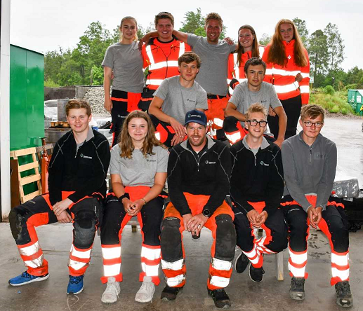 Tolv av de 14 lærlingene hos Håkonsen & Sukke Landskapsentreprenør foreviget under en samling i bedriften 5. juni. Foto: Aleksander Limkjær, Tønsberg Blad