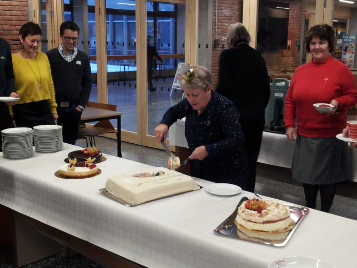Under årets førjulstreff 13. desember på Norges idrettshøgskole ble det markert at Helene Bugge har gått over i pensjonistenes rekker fra 1. desember. Helene har vært daglig leder i BAD, PARK og IDRETT i mange år og har blant en rekke oppgaver sittet i park & anleggs redaksjonsråd helt fra fagbladets spede begynnelse våren 2002. Det var mange som ønsket å takke pensjonisten for hennes store innsats og alle de viktige bidragene hun har stått for innen grøntanleggs-, frilufts- og idrettssektoren. Talene var mange, gavebordet ble omfangsrikt, og gjestene ble servert julemat og kaker.