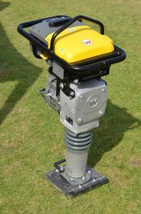 Dagens stampere krever mindre muskelkraft. Denne moderne utgaven fra Wacker Neuson er batteridrevet. Foto fra Have & Landskab 2017: Ole Billing Hansen