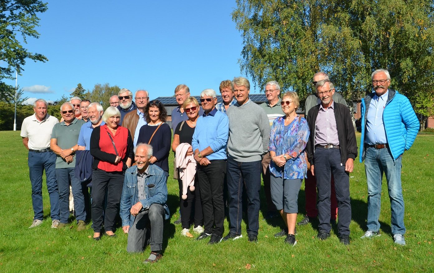 Tirsdag 14. september møttes de som var gartnerelever på Statens gartnerskole Jensvoll i 1970/71 til et gjensynstreff på sin gamle skole. Det ble hjertelige gjensyn med medelever og lærer Daniel Klykken (foran). Han hadde denne anleggsgartnerklassen som sin første i en lang karriere i anleggsgartnerfaget. Gode minner og artige historier ble utvekslet på gamle tomter, som ikke var lette å kjenne igjen, for mye er endret på femti år.