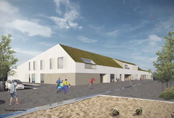 Flerbrukshuset skal ligge på Grorud i Oslo. Huset vil inneholde spilleflate for håndballhall, styrketreningssal, garderober, klubblokaler for Grorud IL og en barnehage med 8 baser. Illustrasjon: LINK arkitektur