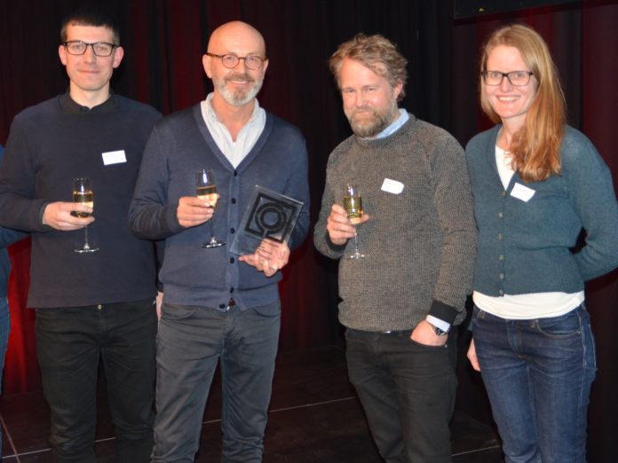 Prisvinnere fra Landskapsfabrikken AS. Fv: Lars Danielsson, Inge Dahlman, Andreas Nypan og Mona Ranvik.