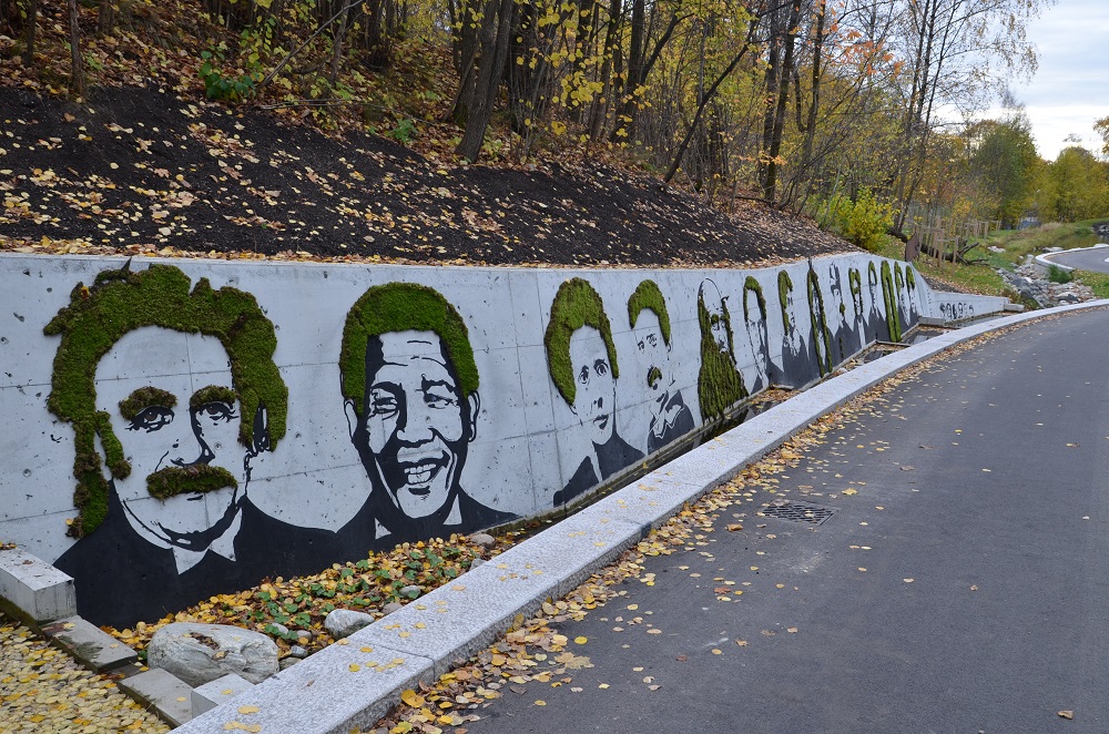 Ved en nylig åpnet del av Gaustadbekken i Oslo har kunstnere fra det store atelierfellesskapet Påfuglen i sommer fått boltre seg med en ny form for utsmykning. En 40 meter lang betongvegg har fått fjorten portretter av kjente mennesker innen vitenskap og kultur. Det spesielle med portrettene er at all hårvekst – hodehår, barter og skjegg (samt parykk) – består av levende mose, noe som gjør at portrettene vil endre seg over tid. Gabriel Bøen fra Oslo husgartnere har stått for mosen, som har fått etablere seg på filt gjennom tre sesonger i Tyskland. Jonathan Chedeville og Jonathan Varcoe fra SOW har malt portrettene med god hjelp av Jesse Enqvist og Rasmus Lyche Iversen.