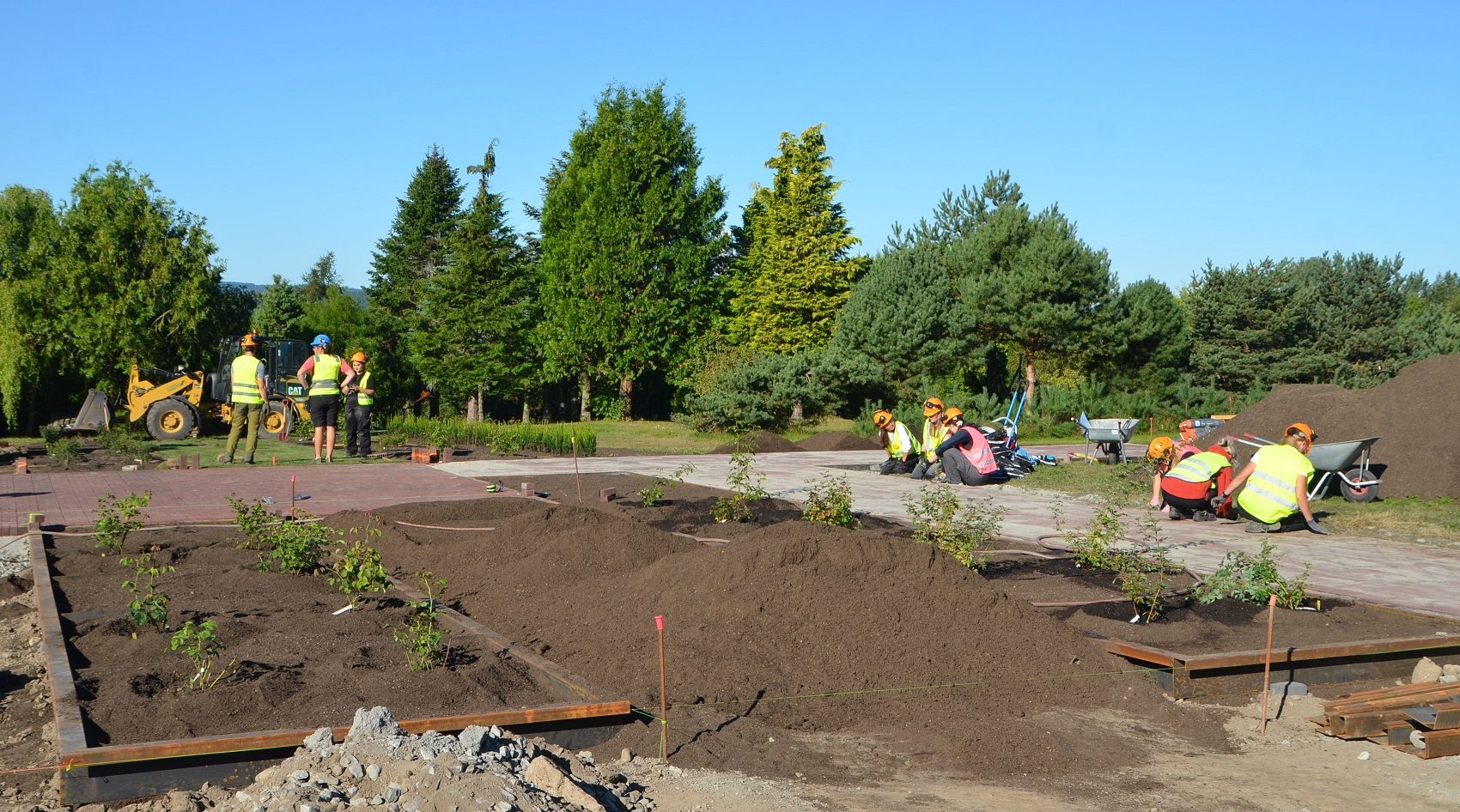 Arbeidene med det nye rosariet i planteskolen er forberedt av anleggsgartnerne i firmaet Uteanlegg, men arbeider som montering av skillevegger, cortenstålkanter, vibrering av settelag, avretting av teglsteinsbelegg og planting av rosene i ugrasfri kompostjord er utført av førsteårs landskapsarkitektur- og landskapsingeniørstudenter. Dette er niende år kurset LA115 gjennomfører et byggeprosjekt på campus. Arbeidet er ledet av anleggsgartner Ragna Berg, som er koordinator i Norges landskapslaboratorium. Det gir studentene verdifull lærdom de kan ta med seg videre i studiet og inn i yrkeslivet. Studentenes arbeid ble avsluttet fredag 2. september. Ettersom de ikke rakk å bli helt ferdige med rosariet, vil arbeidene bli fullført av de parkansatte ved universitetet i løpet av høsten. Den første roseblomstringen vil besøkende kunne oppleve sommeren 2023.