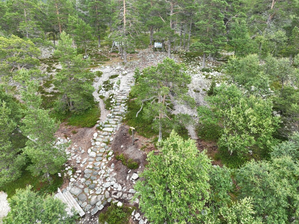 Aabrekk legger til at arealet hvor den gamle steintrappa lå, ble dekket med torv hentet inn fra nærområdet. Det ble også satt opp lave ledegjerder for å skåne flyttet torv i etableringsfasen.