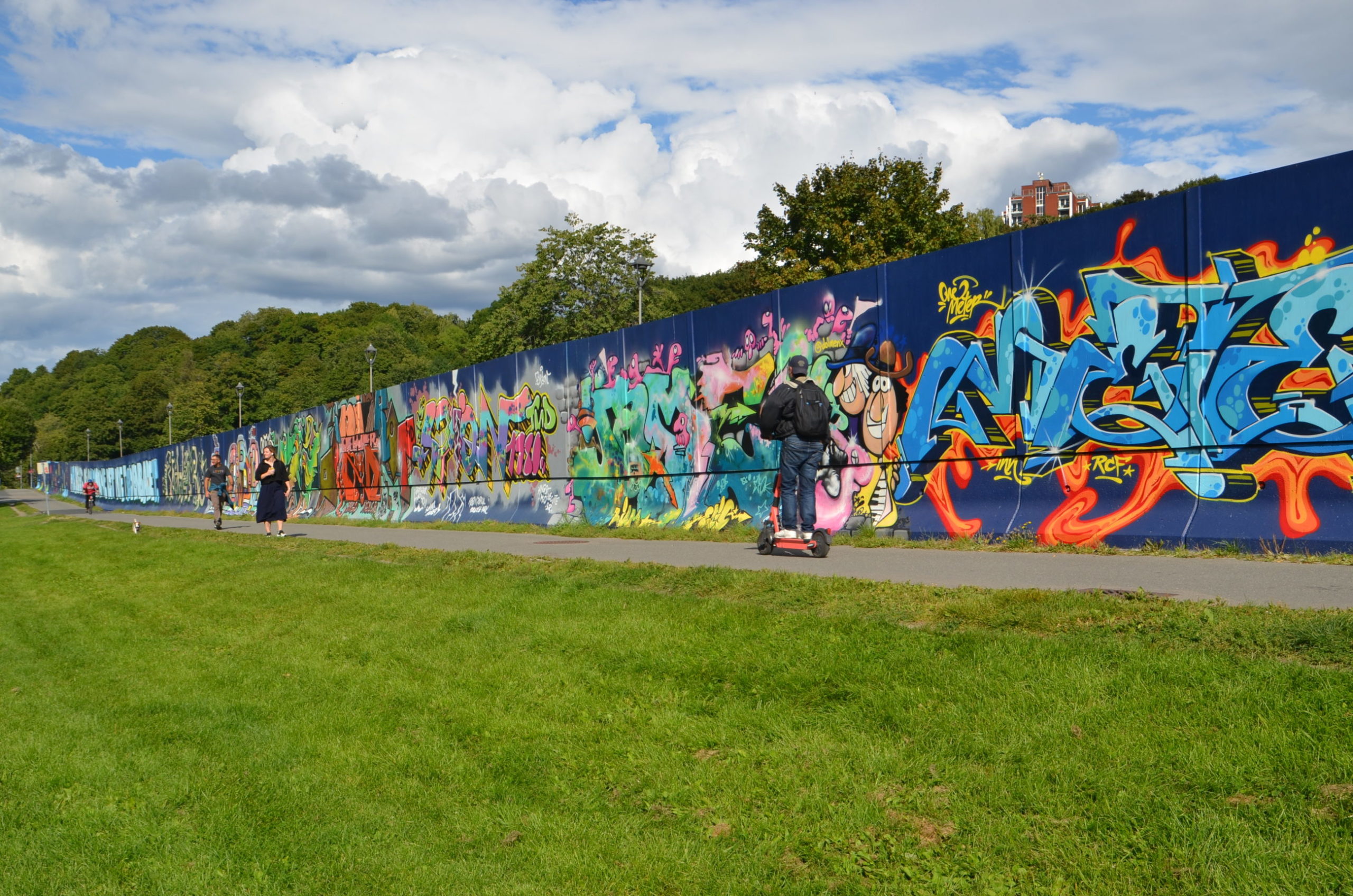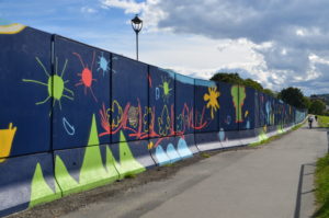 Tøyenbadet i Oslo stengte ved årsskiftet. Det gamle badet er revet, og arbeidet med å bygge nytt er i gang. Mens byggearbeidene pågår, har Oslo fått det som ganske sikkert er hovedstadens lengste kunstverk, og på landsbasis vil nok få andre kunne konkurrere med en 266 meter lang, dekorert vegg.